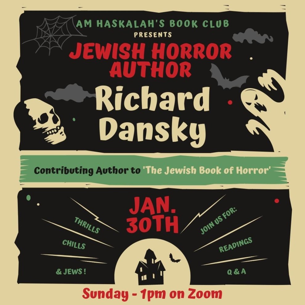 Thrills! Chills! and Jews! Am Haskalah's Book Club presents guest speaker, Richard Dansky, contributing author to the newly-published 'Jewish Book of Horror'.
