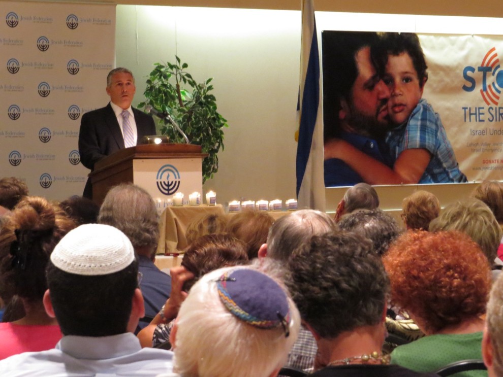 “Unlike festive Yom Haatzmaut gatherings and programs which have occurred this past year, this is a time of solidarity, not celebration. Whenever precious human lives are lost – whoever they are and wherever they live – we do not celebrate,” said Mark L. Goldstein, executive director of the Jewish Federation of the Lehigh Valley. “Israel acts in self defense seeking to hit terrorist targets, Hamas rocket warehouses and tunnels that enable terrorists to infiltrate into Israel.”