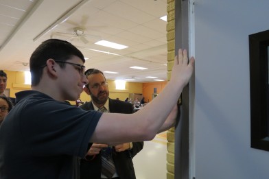 Students, faculty and administration of the Jewish Day School of the Lehigh Valley gathered together on Feb. 6 to hang newly donated mezuzot around the school and re-fasten others that had gotten loose.