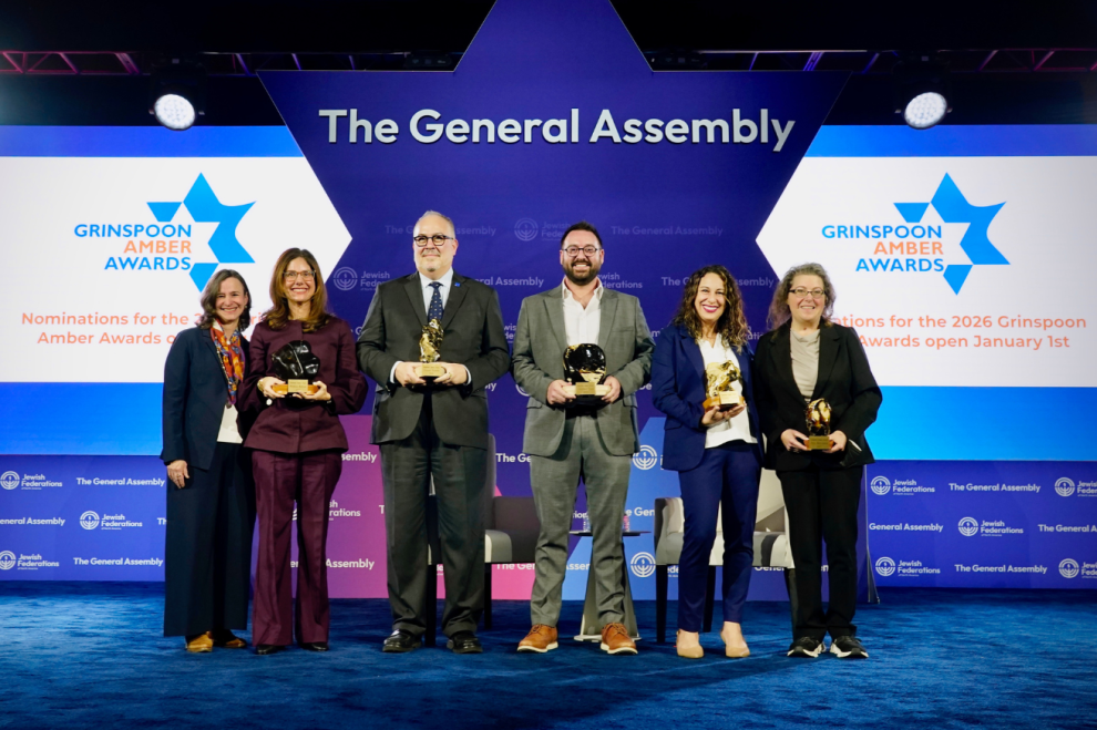 On Tuesday, five outstanding professionals who have made exceptional contributions to the Jewish world received the first ever Grinspoon Amber Awards at the annual Jewish Federations of North America General Assembly. The Awards honor professionals whose leadership and dedication have strengthened Jewish life in meaningful and enduring ways, celebrating individuals whose work shapes and uplifts the Jewish community. The inaugural Awards, first announced at the 2024 General Assembly, reflect both organizations’ shared commitment to celebrating and supporting the professionals who sustain Jewish communal life.