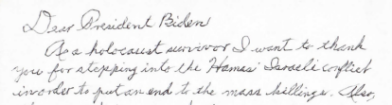 Nearly 2,500 Holocaust survivors and their descendants sent President Joe Biden a letter thanking him for supporting Israel following the terrorist massacre Hamas carried out on October 7th.
