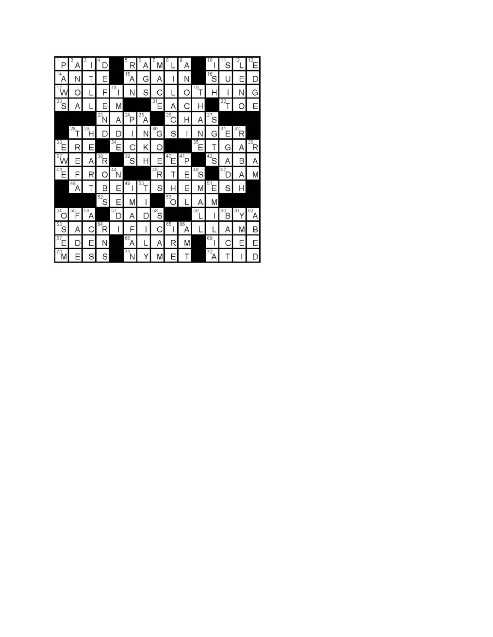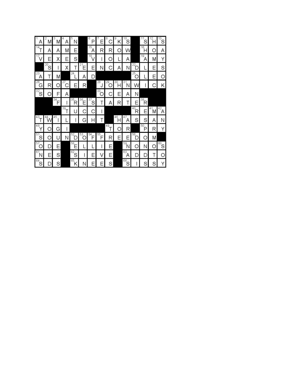 crossword answer key