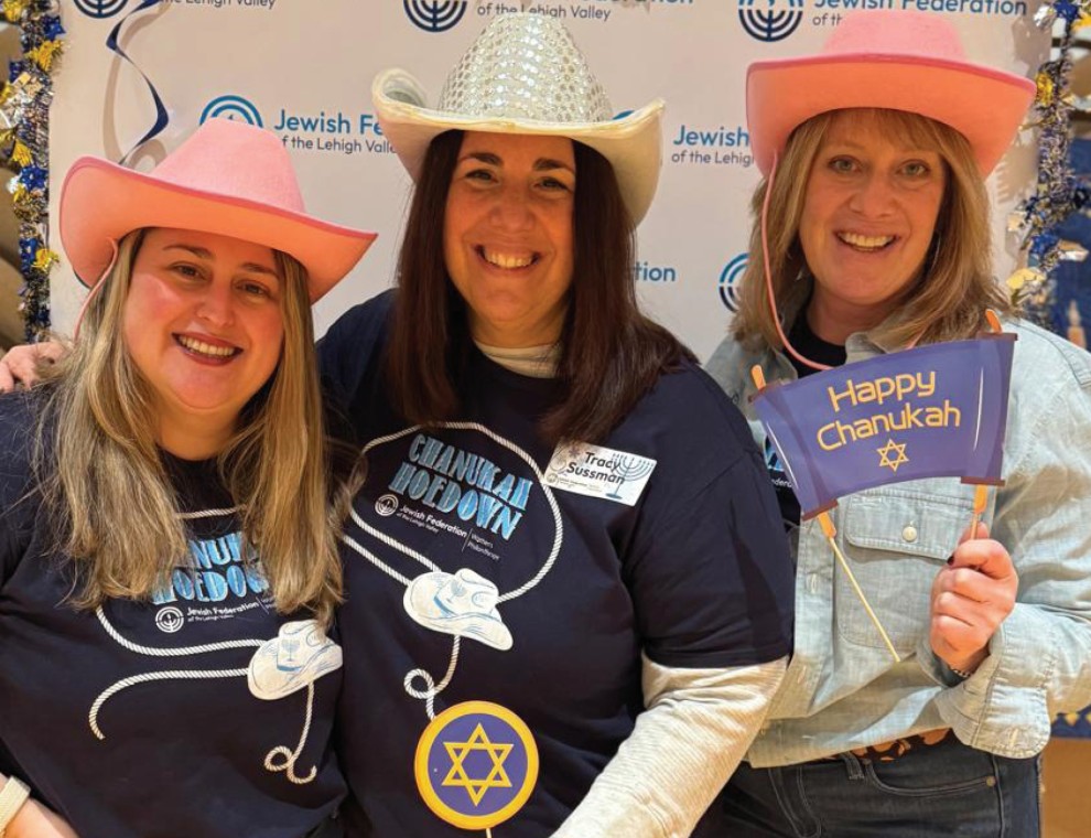 Chanukah evokes menorahs, dreidels, latkes, and sufganiyot (donuts). Surely not hoedown. But the co-chairs for this year’s Women’s Philanthropy holiday celebration—Tracy Sussman, Kimberly Valuntas, and Amy Oselkin—along with Lauren Rabin, president of the Jewish Federation Women’s Philanthropy, shook things up by deciding to host a Chanukah hoedown at the JCC on December 10.