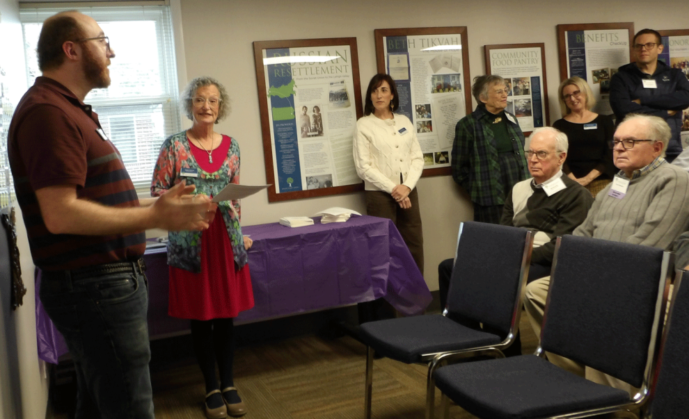 She introduced a handful of JFS staffers and workers, each of whom briefly described the work they do. They included Doug Trachtman, food pantry coordinator; Amanda Thomas, accessibility and inclusion coordinator; Carah Tenzer, licensed social worker; Carol Wilson, clinical coordinator of older adult services; Marcia Schechter, outreach coordinator; and Laura Garber, clinical social worker.