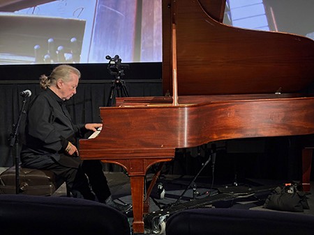 On March 16, an audience at the Frank Banko Alehouse Cinemas at Bethlehem’s ArtsQuest watched a documentary about Bayless’s life before and after the stroke that shut down his right side in 2008. Director Stewart Schulman’s documentary “Left Hand Rhapsody: The Musical Memoir of Pianist John Bayless” showed Bayless touring the world to play to packed houses, struggling through physical therapy after the stroke, practicing full piano pieces left-hand-only, converting to Judaism, and eventually returning to touring to perform and to spread his inspirational story. After the film screening at this afternoon event cosponsored by the Jewish Federation of the Lehigh Valley, Bayless and Schulman answered questions from the audience. Then came an inspiring live performance.