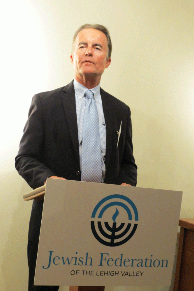 “I had to tell him these two extremes in my life,” said Wollschlaeger, speaking at the Jewish Federation of the Lehigh Valley’s Major Donor Reception on Sept. 27. “On the one hand, yours truly, that’s me, is a Jew by choice, an Israeli by choice, and an officer in a combat unit in the Israeli army … And on the other hand, my father, his grandfather, was a highly decorated World War II German tank commander, an elite soldier, and a totally convinced national socialist.”