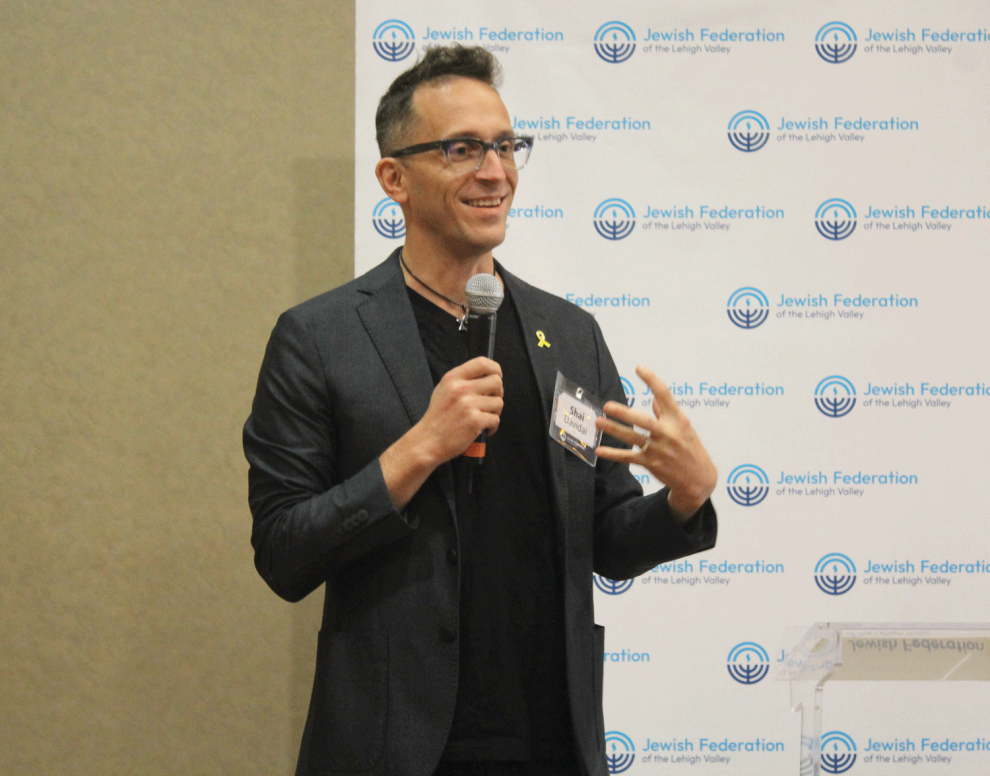 Israel Zighelboim, co-chair of the Federation’s 2026 Annual Campaign for Jewish Needs along with his wife, Valeska, and Eileen Ufberg, set the stage for Davidai. “Motivated by the inaction of his university’s administration,” he said, “he spoke out with passion and moral clarity.”