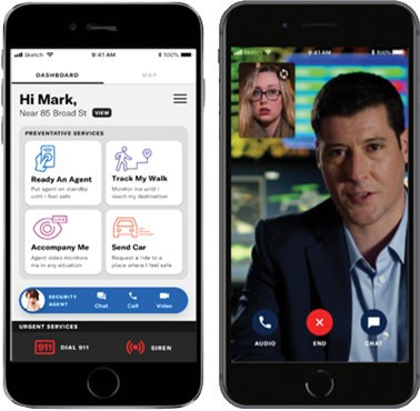For instance, when walking alone at night, users may open the live video chat and have an agent available to monitor their whereabouts.