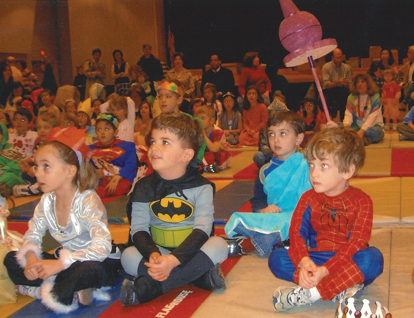 The community Purim celebration is particularly significant to me. My tenure working at the JCC began just after Purim last year, so this is the first carnival I have the pleasure of planning and executing. As much of a joy as that is for me, there’s another layer to my personal connection to this event. For those of you who know me from the front desk and elsewhere, you may be looking at one of the photos here and thinking that one of those kids looks familiar. Your suspicion is correct! That’s me wrapped in a bright blue blanket and holding a very DIY staff, attending the 2004 JCC Purim celebration with my preschool class. I believe my costume was supposed to be King Achashverosh, but it certainly takes a child’s imagination to fully sell that!