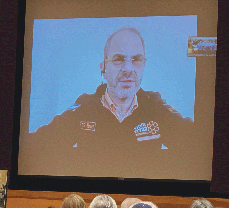 “The reason we were successful was because we were prepared,” Eli Beer, founder of United Hatzalah, told an audience in the JCC Kline Auditorium on December 17. That preparation, he said, was thanks to the ongoing efforts of nonprofit organizations that raise funds regularly for it—both before and after tragedy strikes. That includes the Jewish Federation of the Lehigh Valley, which has donated specially equipped motorcycle ambulances known as ambucycles to United Hatzalah and sponsored Beer’s live appearance via Zoom.