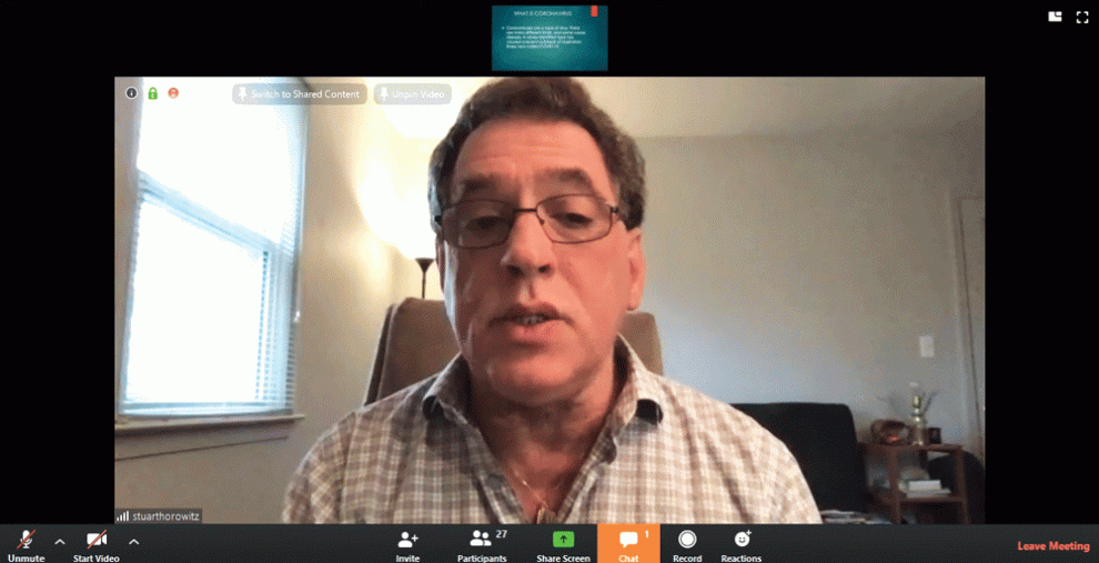 Stuart Horowitz, LCSW, ACSW, QCSW, led the webinar. Horowitz is chair of the JFS clinical committee, and as JFS Executive Director Debbie Zoller said in her introduction of him, he has “done just about everything a person can do as a social worker.” This includes leading seminars on post-traumatic stress disorder after 9/11 and decades of practice with clients of all ages.