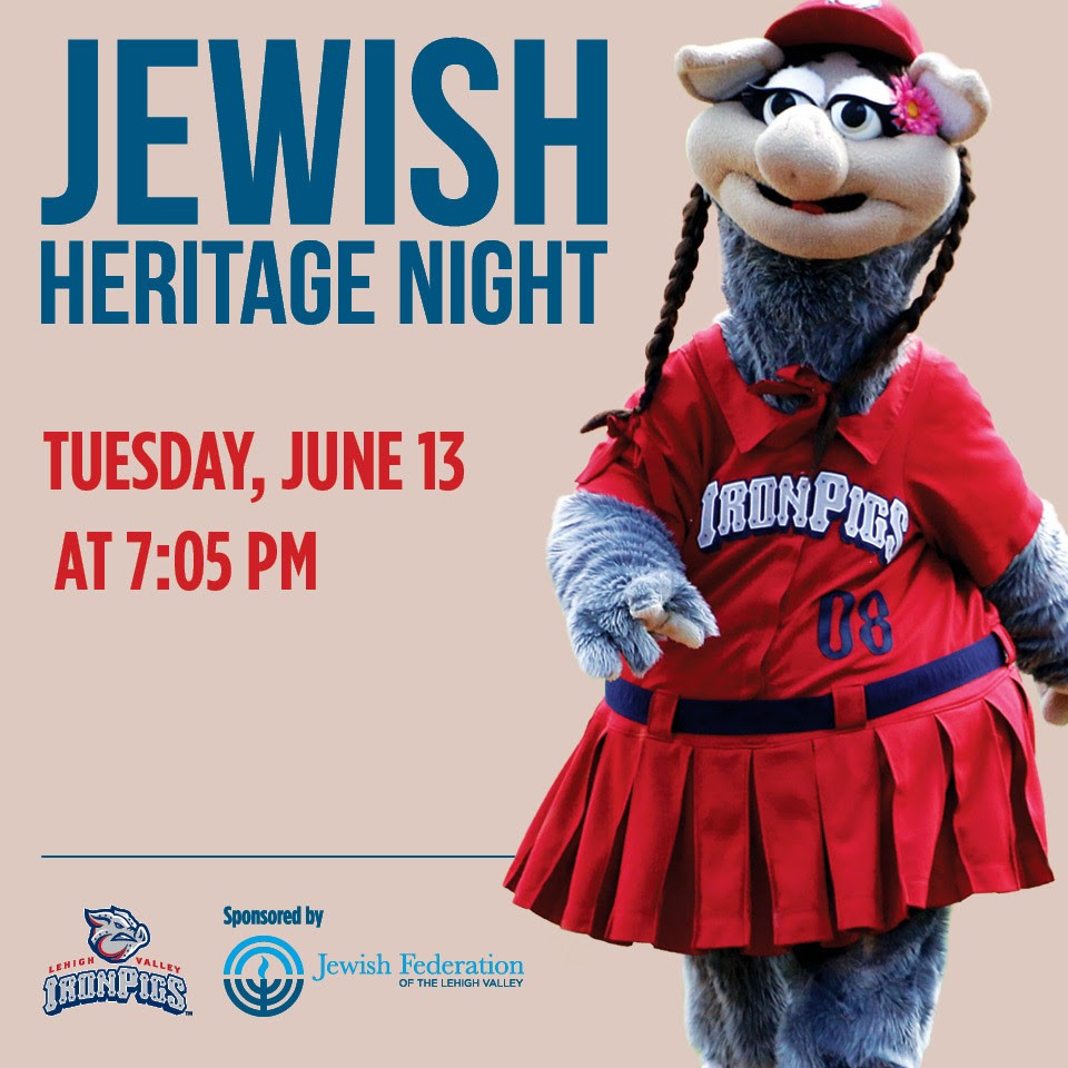 Jewish Heritage Night at the Lehigh Valley IronPigs is back again. Jewish Day School kids will sing “Hatikva” before the game and kosher food will be served when the Philadelphia Phillies’ Triple-A affiliate plays the Toledo Mud Hens on Tuesday, June 13.