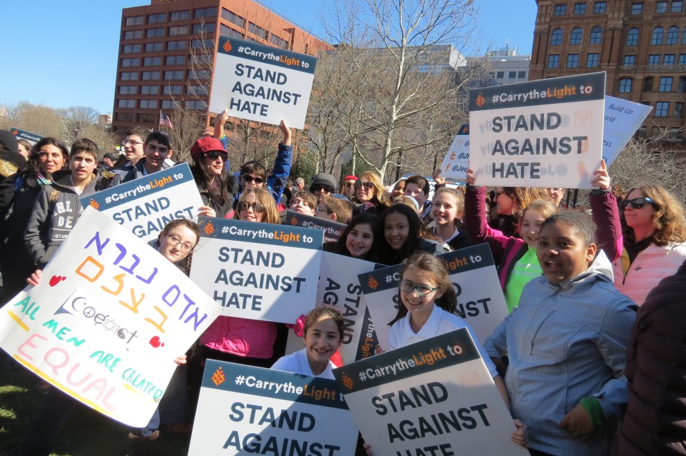 More than 40 representatives from the Lehigh Valley, including a large contingent of middle school students from the Jewish Day School, joined with thousands of others on Independence Mall on March 2 to stand up against hate. The rally was held in response to the recent vandalism at a Jewish cemetery outside Philadelphia and the bomb threats that have terrorized Jewish community centers and other Jewish institutions.