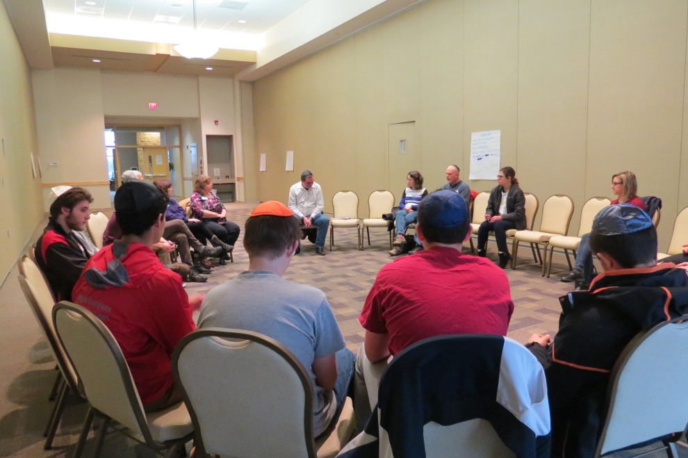 Our facilitator from the ADL, Jerry, expertly handled the challenge of engaging teens and their families around an uncomfortable topic. He posed hypotheticals and asked us to group ourselves based on how we thought we might respond. Jerry spoke candidly, and gave people the freedom to speak openly about their feelings and decisions. Most every single young adult was engaged in the exercises and spoke. They shared their feelings and told personal stories of anti-Semitic incidents that had affected them. It was a powerful scene.