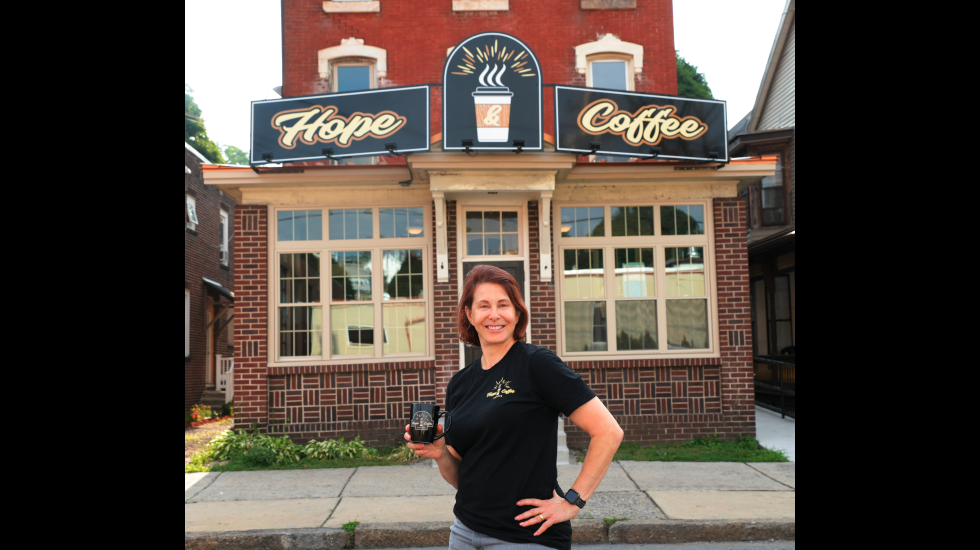 Hope & Coffee is a coffeehouse where customers can purchase a hot drink, but also find companionship with people on a recovery journey from opioid addictions. The friendly employees are going through recovery as well, often unable to find other jobs due to their past. For founder Lisa Scheller, Hope & Coffee is a dream come true – her vision of a place for people in recovery to meet and find a community comes to life every day in an 1865 Victorian building in Tamaqua.