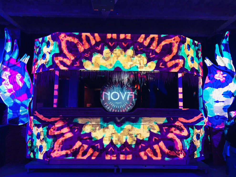 In the center of the large room was an installation of the Nova festival dance floor. Surrounding the installation were curtains with illuminated wings flying upward. How can something so beautiful sit in the center of something so horrifying? Numb, I continued to walk past more burnt cars, the portable bathrooms, and a makeshift bar and DJ stand where broken coolers were strewn on the ground. I listened to a story of a mother who crawled into a cooler to avoid gunshots. Those around her were murdered as she hid, cold and claustrophobic, until help arrived. I couldn’t watch any more videos, but I was compelled to finish. I wanted to honor every single victim and survivor.