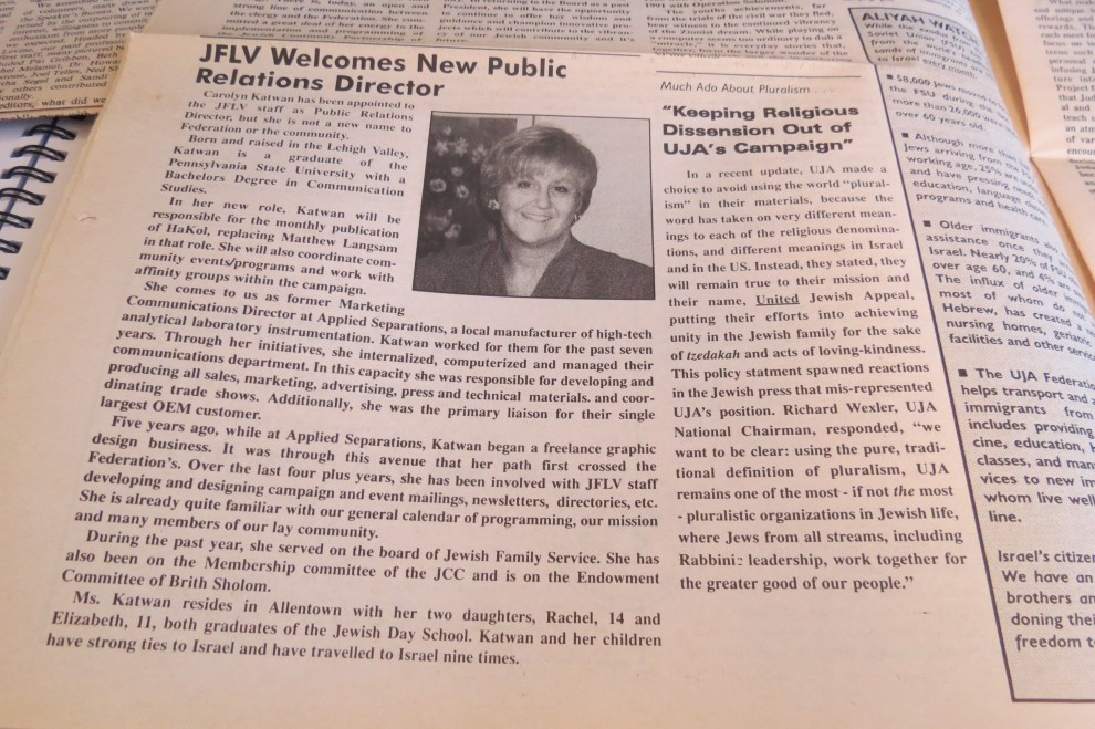 Carolyn Katwan was the editor of HAKOL for 13 years, beginning in June 1997. Katwan, a native of the Lehigh Valley, described her experience with HAKOL as giving her a “gratifying connection to community,” a type of connection that was different from what she experienced growing up. In order to cultivate this connection, Katwan made a number of changes to the production process of HAKOL to modernize the paper, its look and the way it arrived in homes.