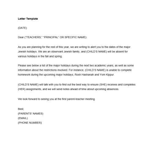 Customize this template to reflect your family’s needs. Send it at the start of the school year to your school principal, as well as to your child’s teachers and guidance counselor.